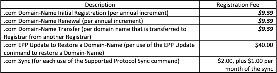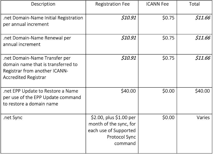 .net Fee Schedule (Effective from 2024-02-01)